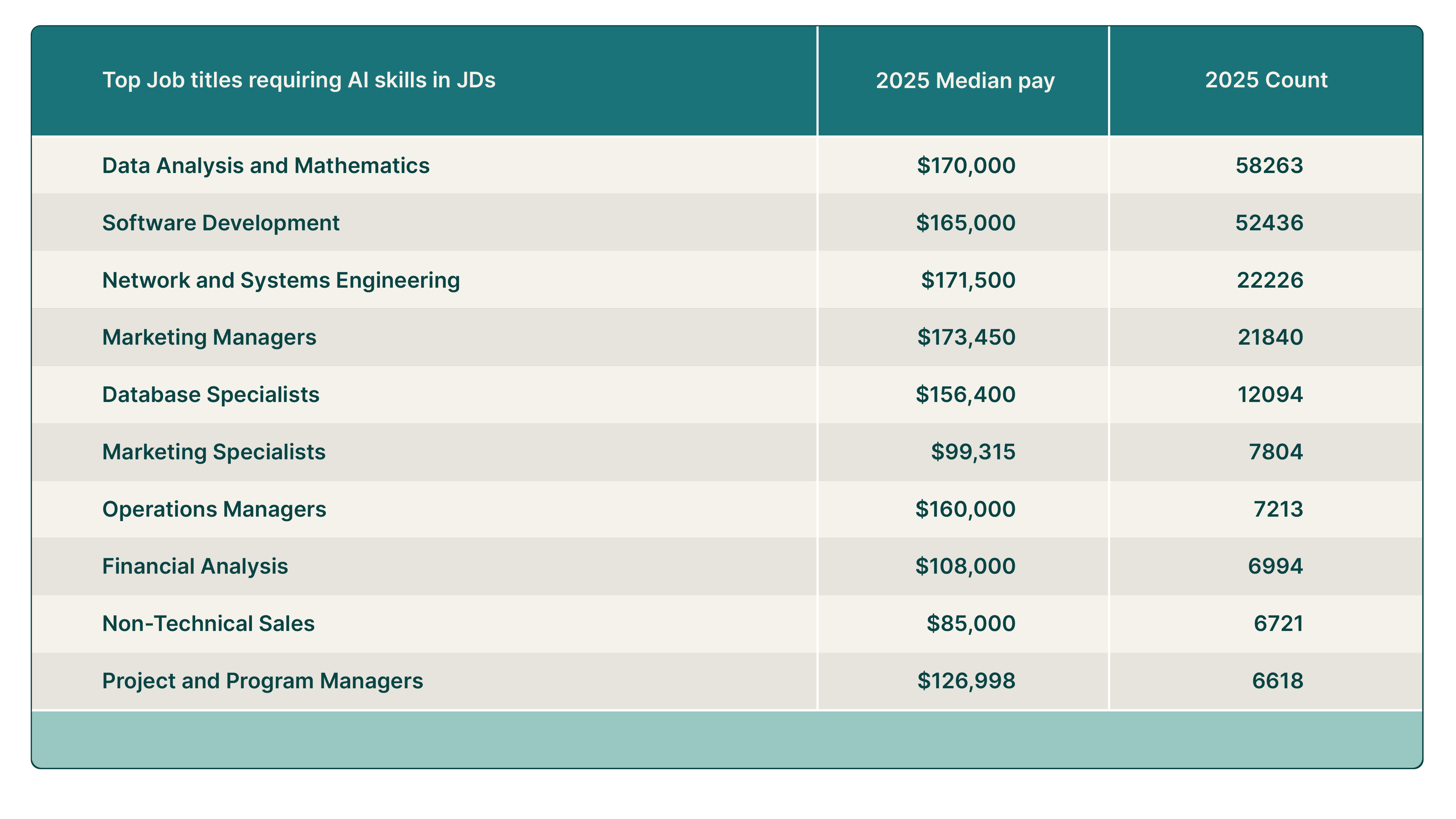 Digging further, I pulled the top occupations requiring AI skills from job posting data.