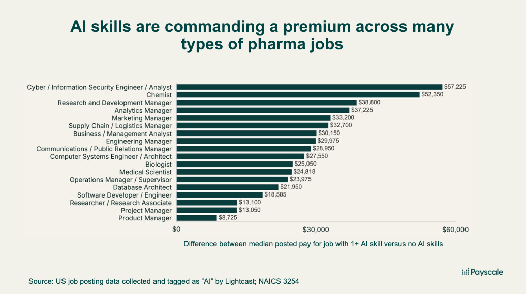 For instance, AI jobs have made inroads in BioPharma, which show up in big way in employee’s paychecks.