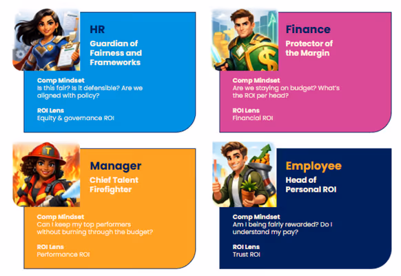 What makes these personas more than a thought exercise is that they're all present in the same pay decision — just never in the same room and never working from the same data.
