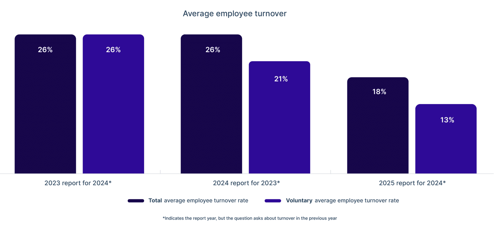 The U.S. job market has experienced whiplash over the past four years. From the Great Resignation in 2022 when voluntary turnover reached a staggering 26 percent to the Great Stay with resignations dropping to 13 percent in 2024, the market has undergone a significant transformation.